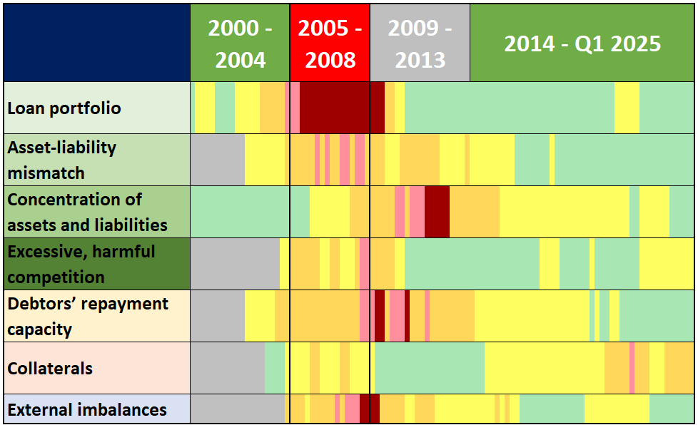 The MNB has, since 2024 Q4, been making decisions on the CCyB rate for domestic exposures based on revised methodology. Accordingly, the MNB has extended and restructured the so-called cyclical systemic risk map (CSRM) used to monitor changes in domestic cyclical risks, on this basis, developed the cyclical systemic risk index (CSRI).