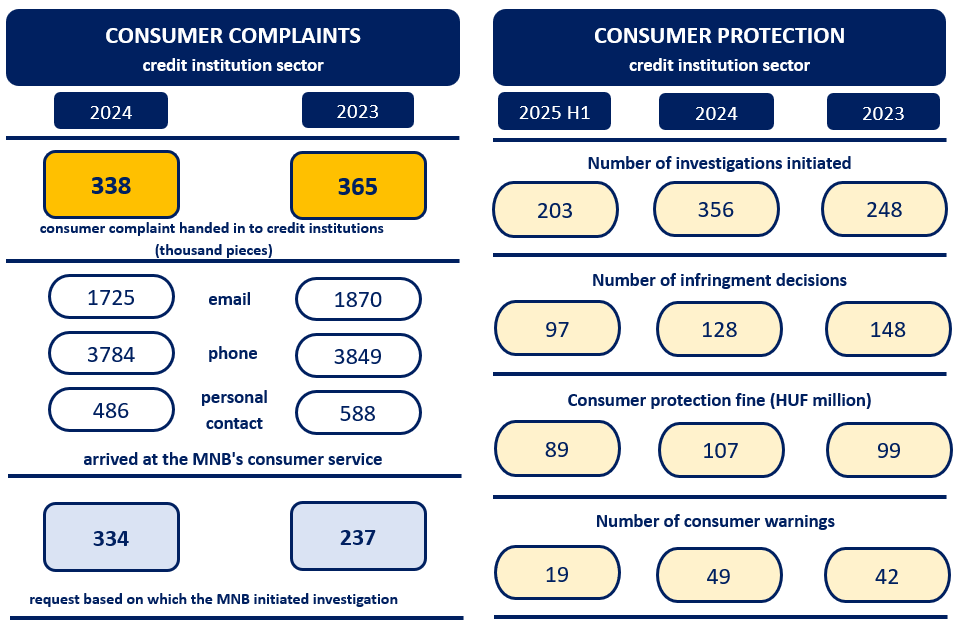 As part of its consumer protection activities, the MNB continuously assesses the risks affecting consumers, thereby contributing to the maintenance of financial stability and confidence in the financial system. The number of credit institution clients requesting MNB action decreased in 2024. The MNB identified shortcomings in the information provided by the institutions before the termination of mortgage loan contracts affected by delays in payment. In response to the increase during the past period in the number of payment service offences, in the scope of its duties as an authority the MNB lays particular emphasis on the prevention of financial crimes.